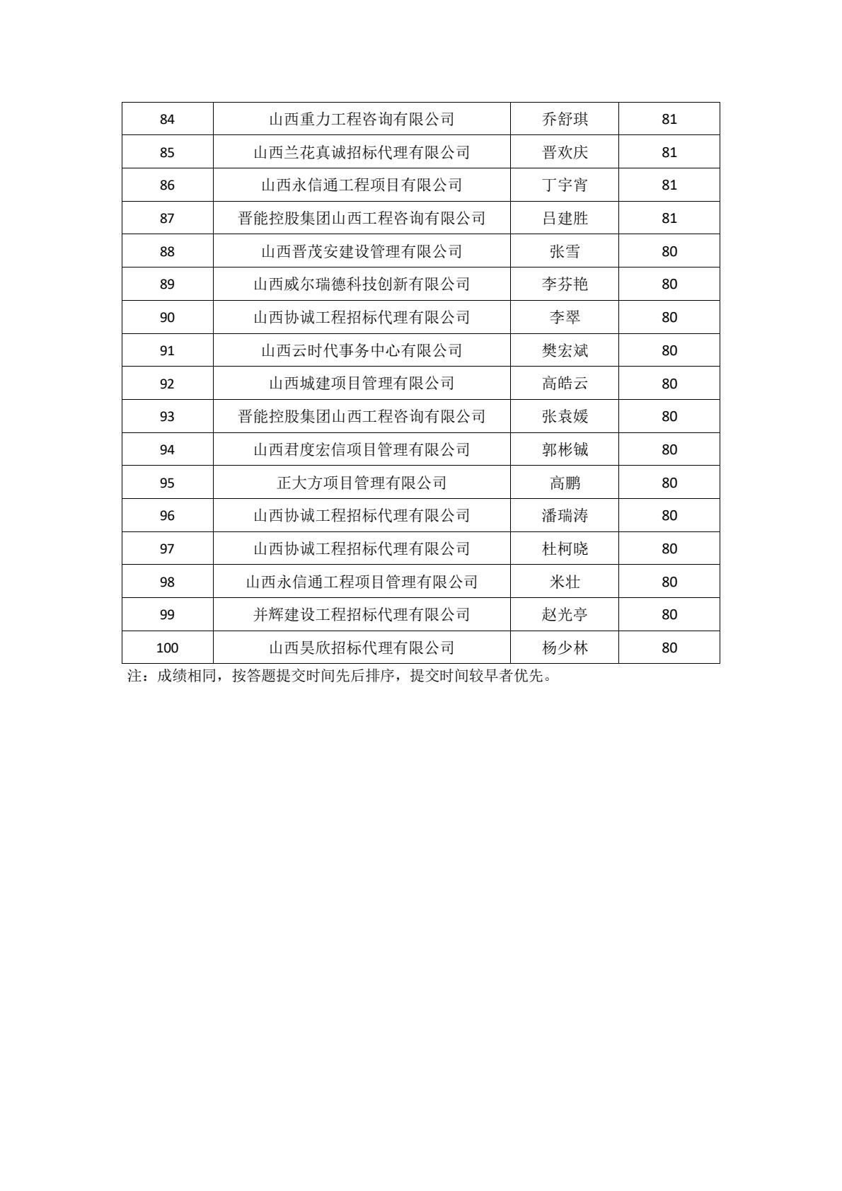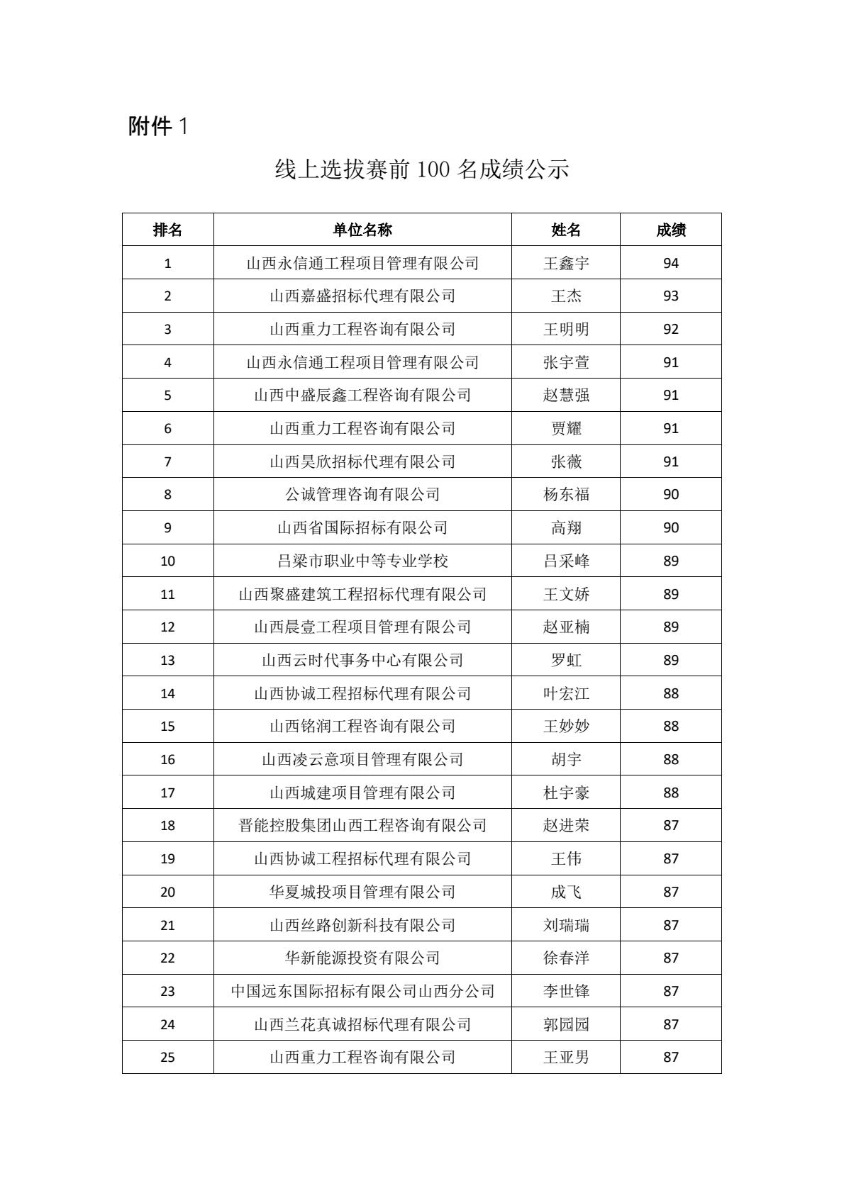 关于公示首届全国招标采购专业技能大赛山西赛区初赛暨山西省首届招标采购专业技能大赛线上选拔赛成绩的通知